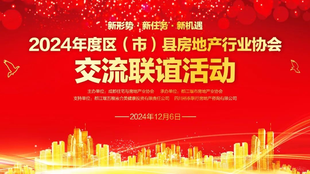在当前房地产市场止跌回稳,持续向好的背景下,为提升行业信心,加强我市市区两级房地产行业协会的合作与交流,实现区域协作、区域共进,为来年更好地发挥协会服务政府、服务行业、服务会员的积极作用,共同促进我市房地产市场的持续健康发展,12月6日,由成都住宅与房地产业协会(成都房协)主办、都江堰市房地产业协会承办的“新形势·新任务·新机遇”——2024年度成都区(市)县房地产行业协会交流联谊活动,在五粮液华西青城山国际康养中心成功举办。